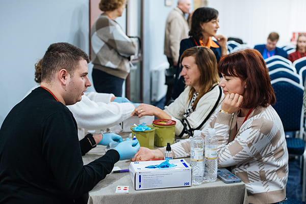 - тренінги для лаборантів центрів крові та інших лабораторних центрів, сімейних лікарів та медичних сестер;